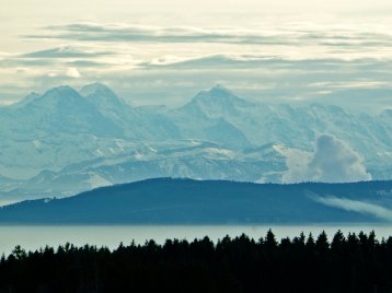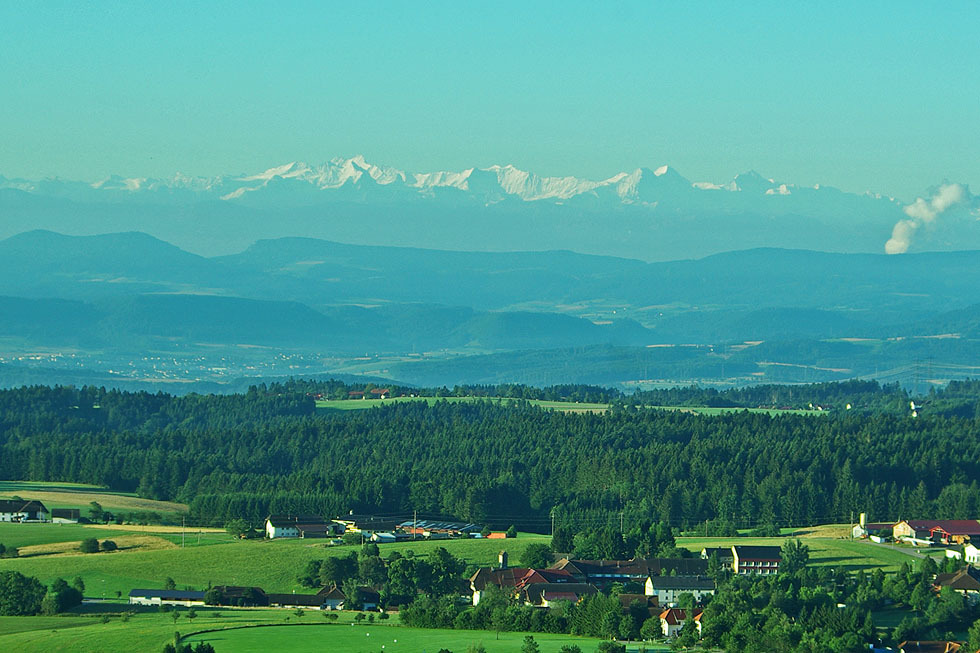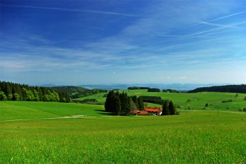 Herrliche Aussichten über sanfte Hügel & wildromantische Täler und - je nach Wetterlage - auf ein beeindruckendes Alpenpanorama.