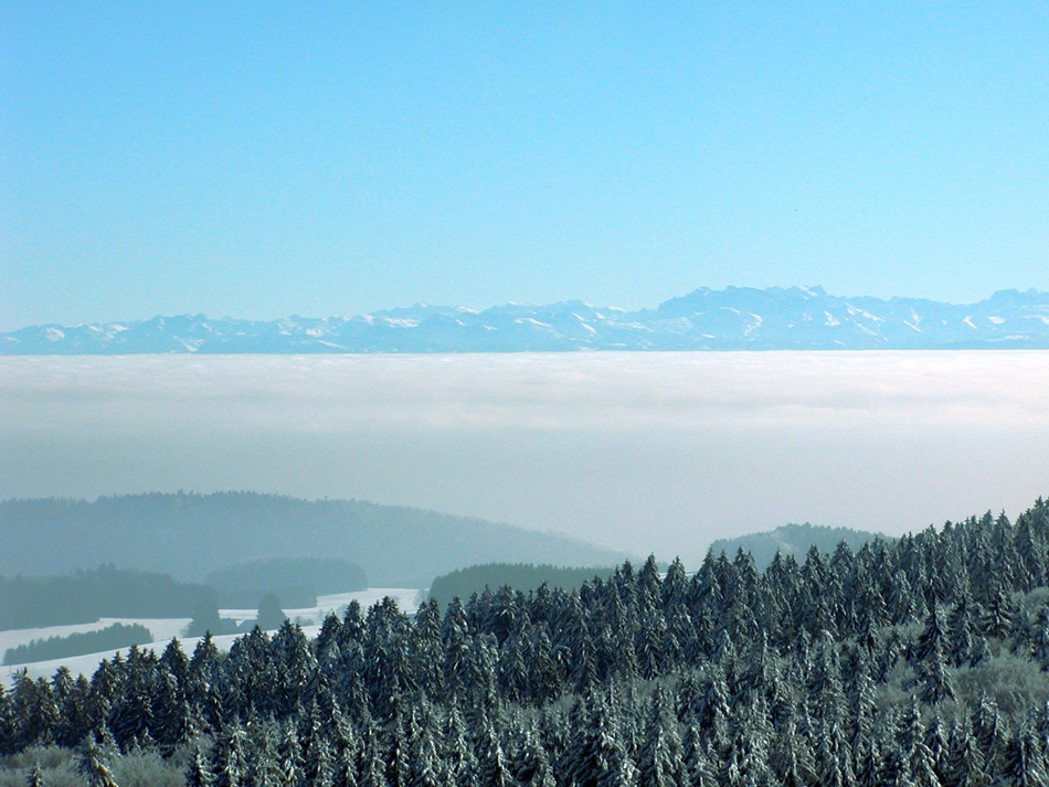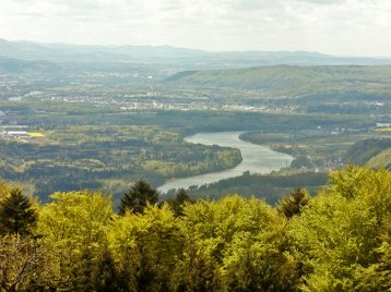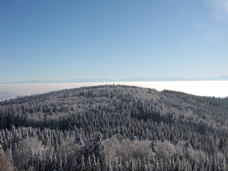 Zudem Ausblicke im Norden in den Schwarzwald, im Westen Richtung Elsaß und Basel und im Süd-Westen ins Rheintal.