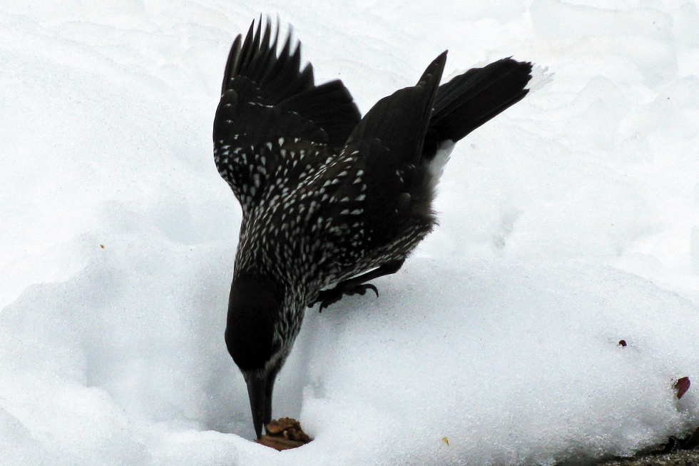 Die Vogelschwärme verbrachten die Nächte im windgeschützten Tal. Morgens flogen Sie zur Futtersuche in die tiefer gelegenen Gebiete und ins Rheintal. Dort sammelten Sie vor allem die Bucheckern. 2009 war ein Jahr in dem besonders viele dieser Buchensamen gereift sind. Die Buchfinken schienen das zu wissen.