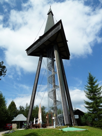 Der auf knapp 1000 Metern Höhe gelegene Turm ist auch dank seines großzügigen Wanderparkplatzes und der Bewirtung während der Sommerzeit der ideale Ausgangs und Ziel-Punkt für große und kleine Mountainbiike-Touren und Wanderungen.