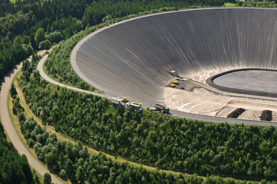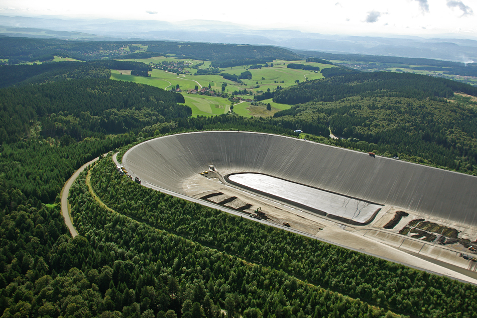 Das auf der Dammkrone 700 m lange und 300 m breite Becken wurde auf seiner Außenseite nach Fertigstellung mit etwa 40.000 Bäumen und Sträuchern weiträumig bepflanzt. Eine Maßnahme, die das Becken fast unsichtbar in die Waldlandschaft integriert.