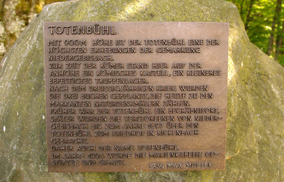 Die Marienkapelle befindet sich in Niedergebisbach auf der Anhöhe des Totenbühles